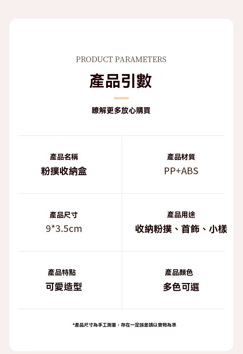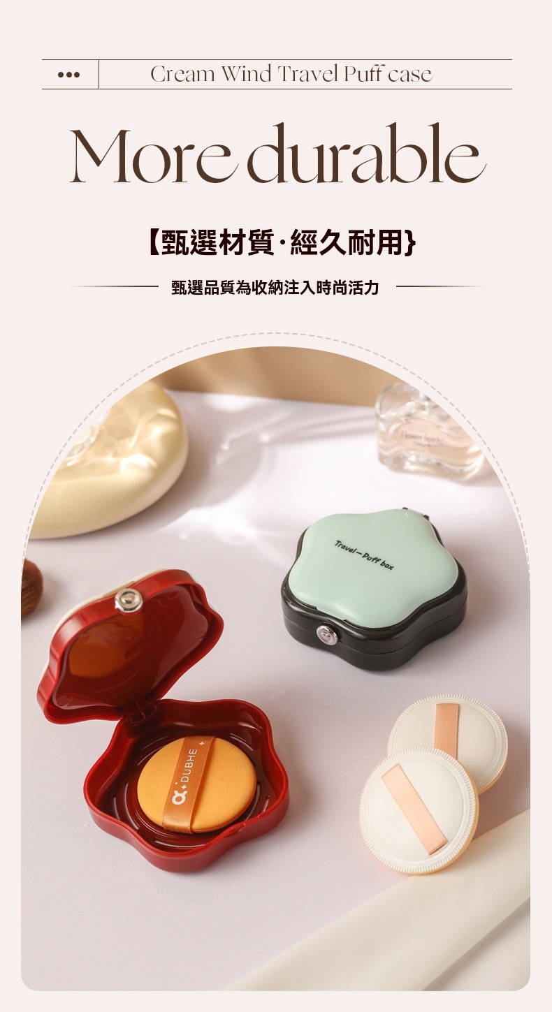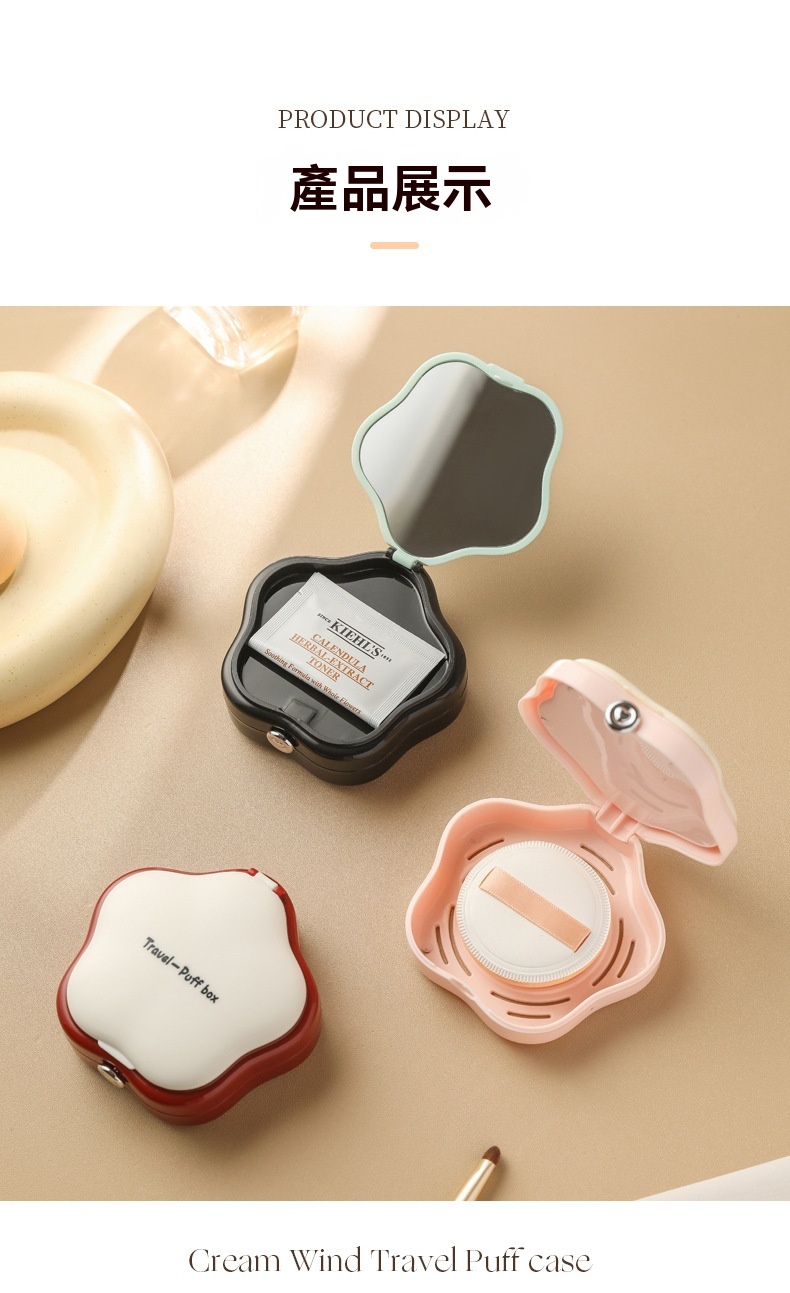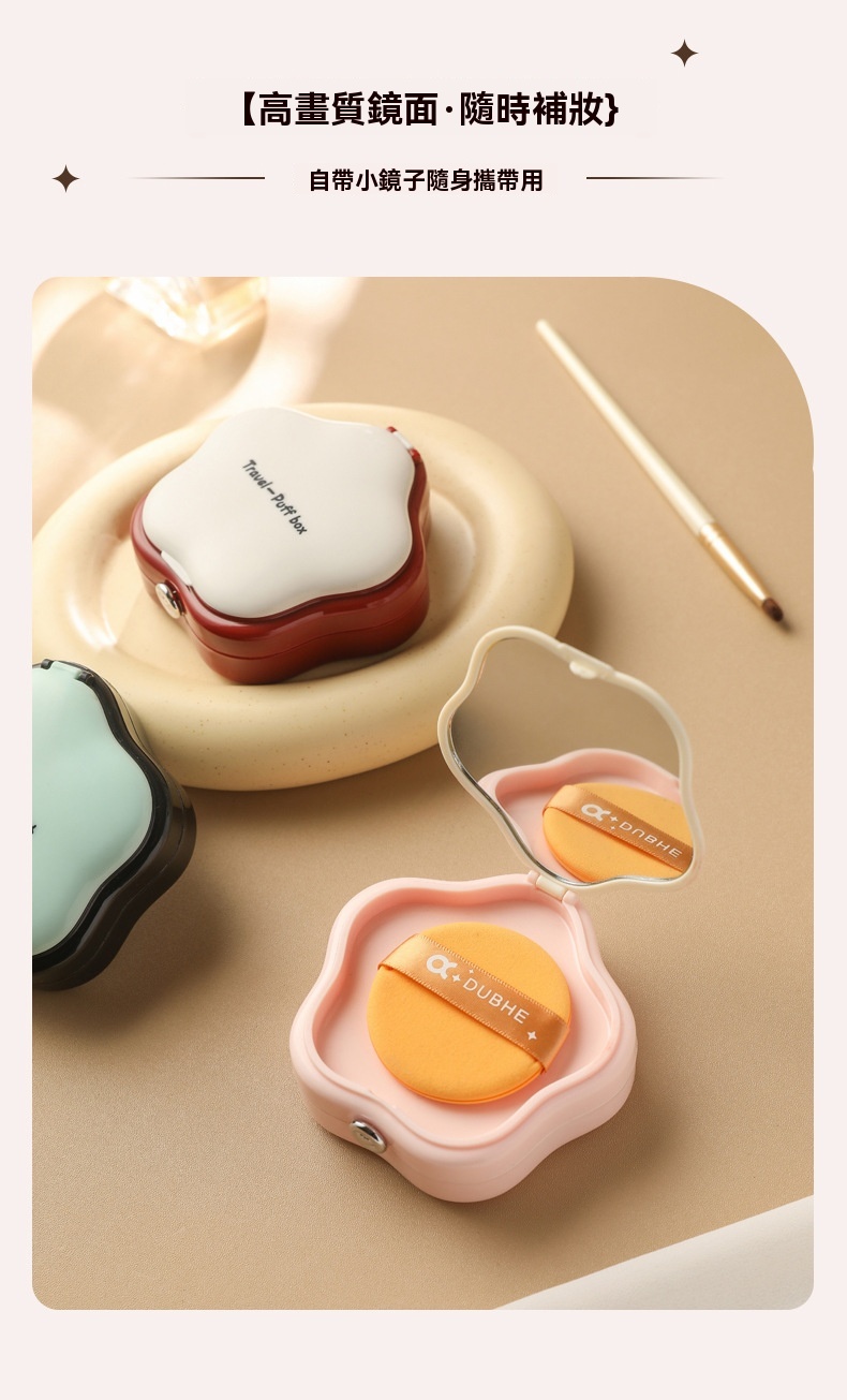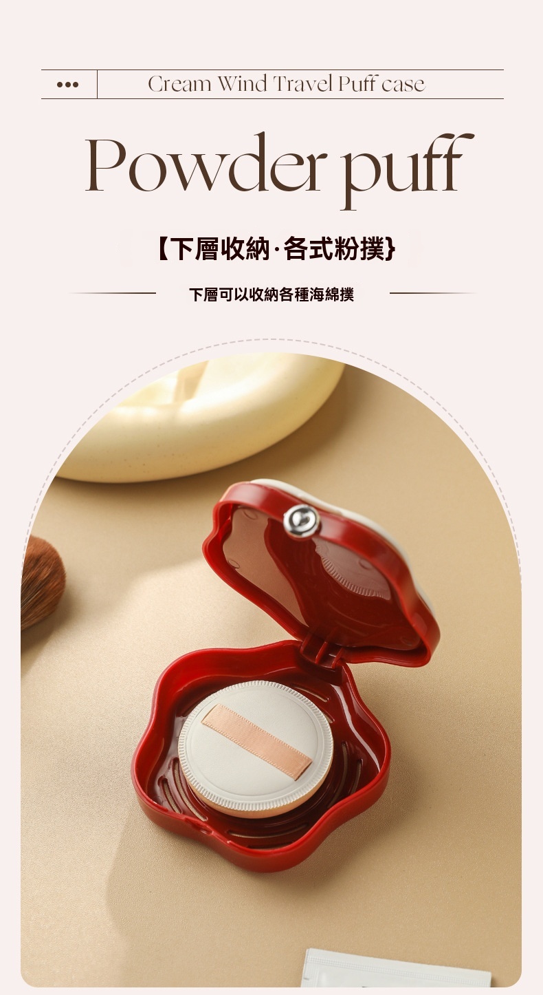 密封防塵防潮,卡扣開合設計,隔絕灰塵潮氣,粉撲不發黴,自帶高清鏡子,出門補妝無需額外帶鏡,氣墊、粉撲補妝更便捷