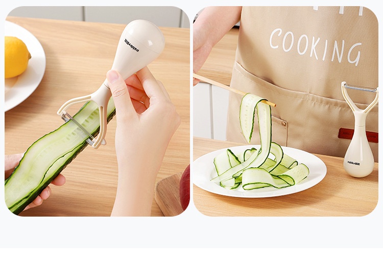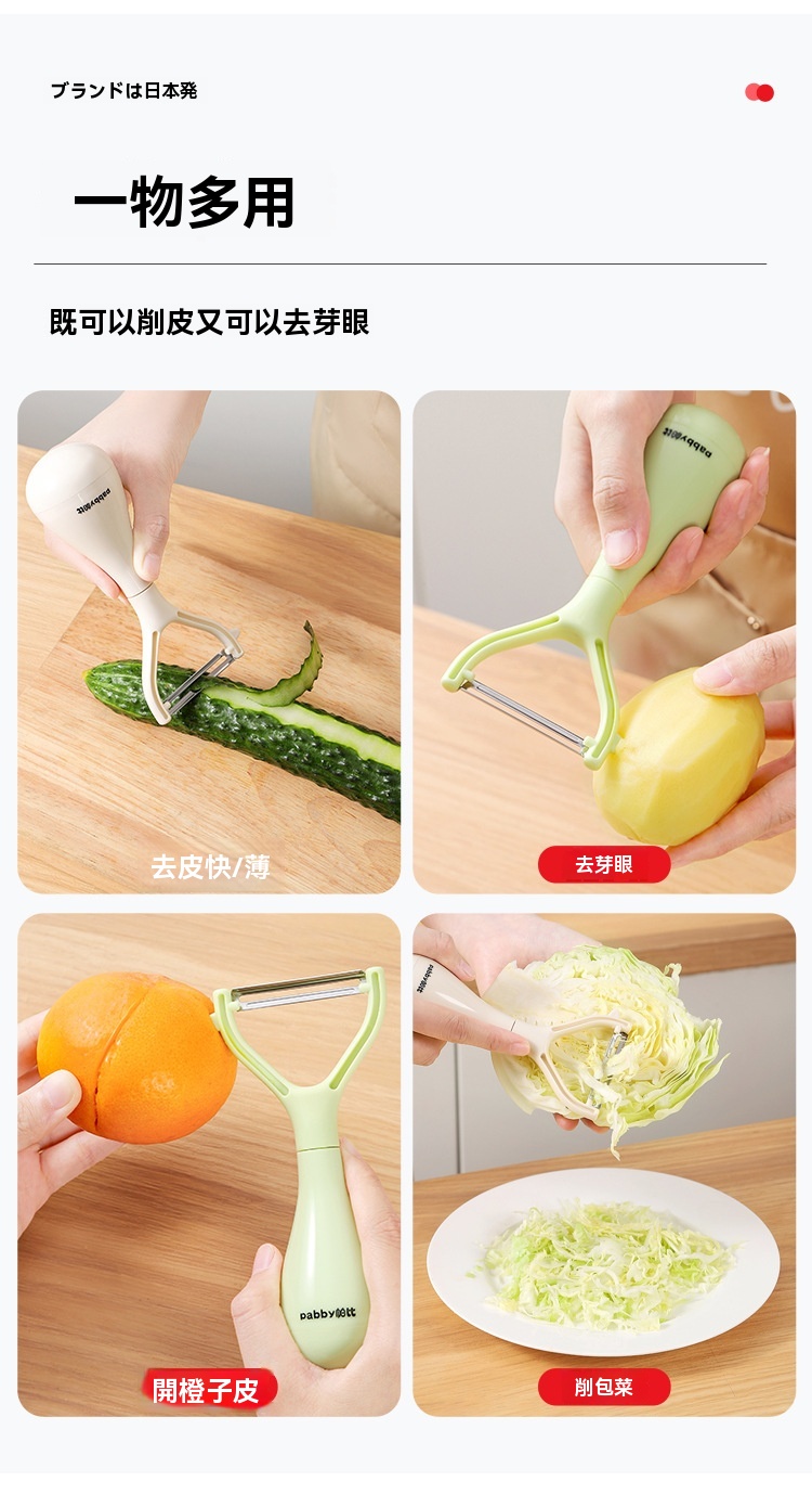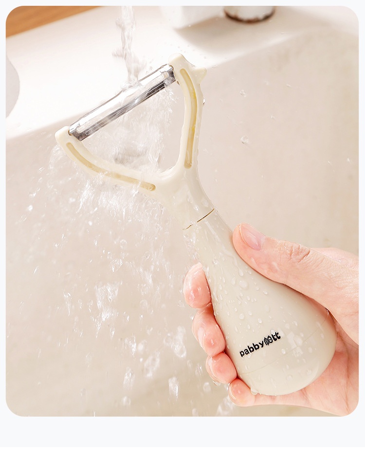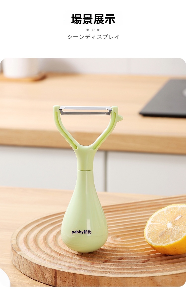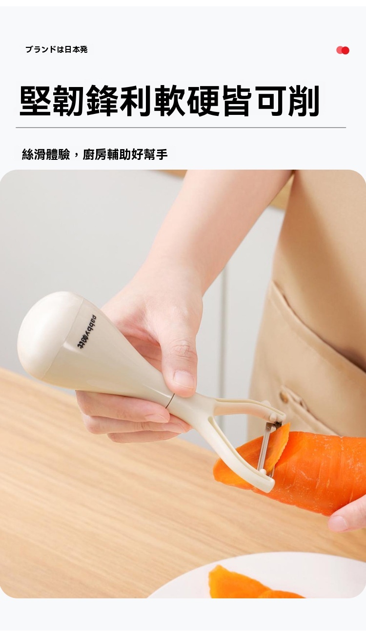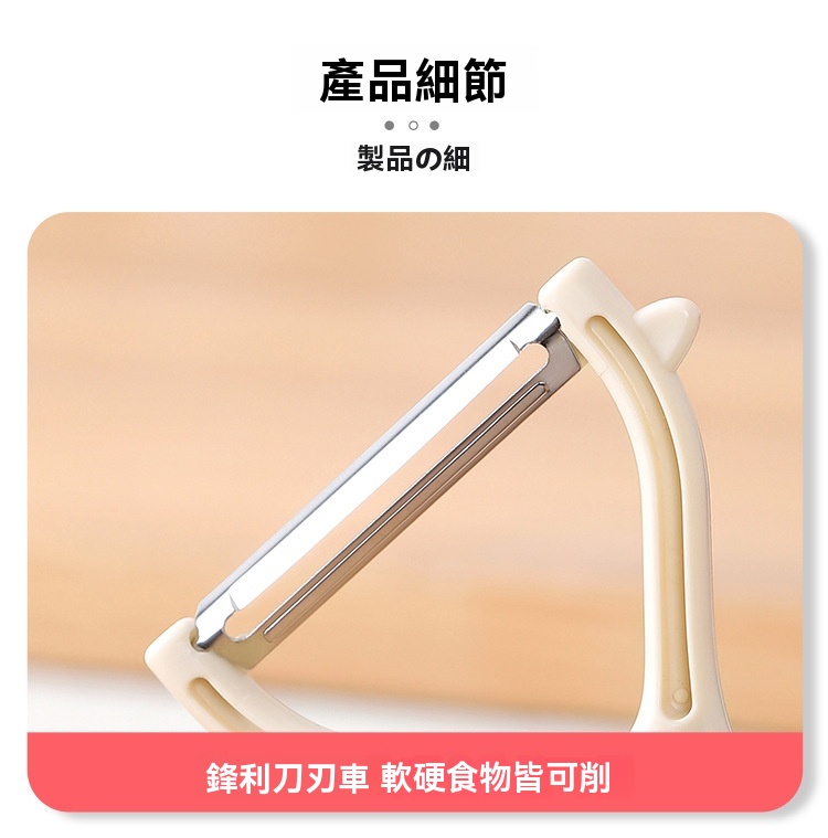 超薄鋒利刀片,削皮薄且快,不浪費果肉,馬鈴薯蘋果輕鬆削,不倒翁立式設計,用完隨手放,不沾檯面,瀝乾水分更衛生