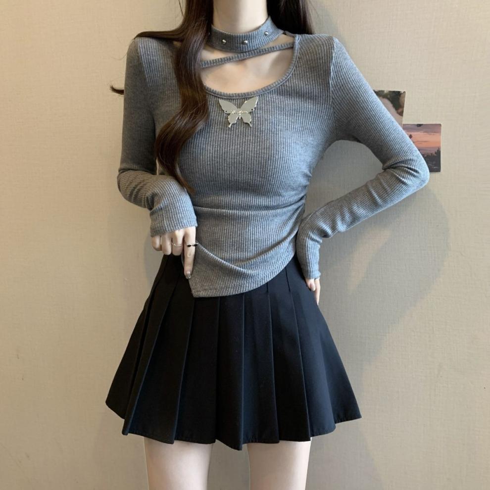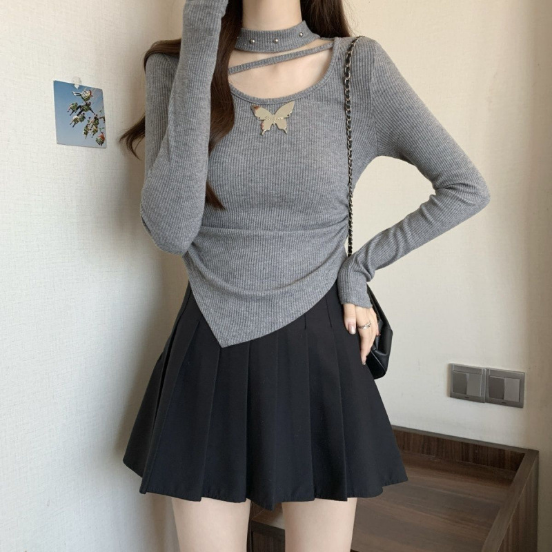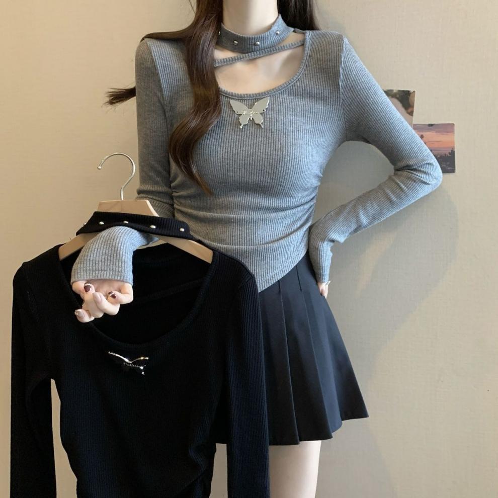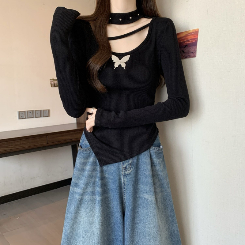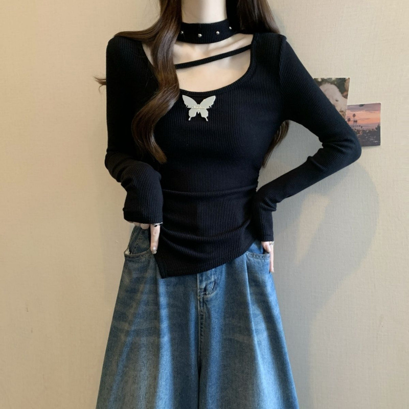 掛脖鏤空設計,小露鎖骨,性感又不失可愛,蝴蝶點綴,甜酷風格拉滿,拍照超上鏡