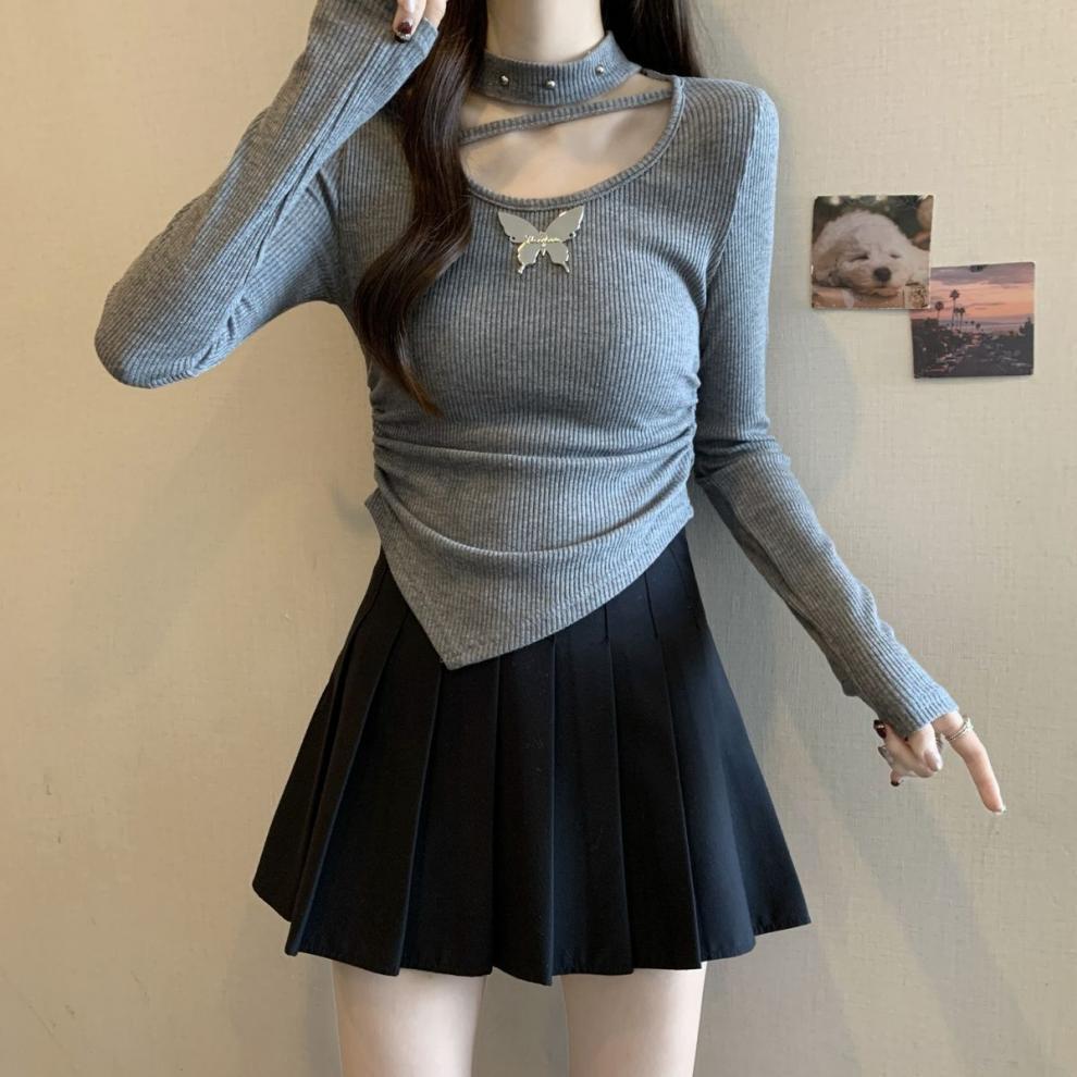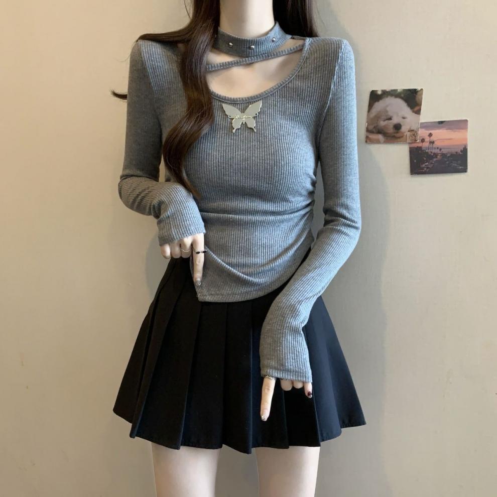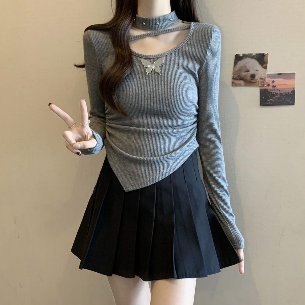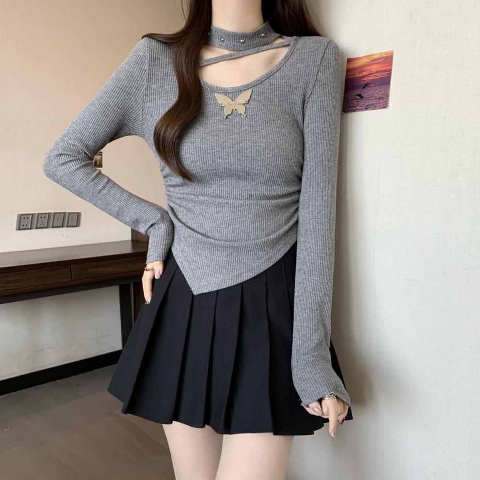 掛脖鏤空設計,小露鎖骨,性感又不失可愛,蝴蝶點綴,甜酷風格拉滿,拍照超上鏡